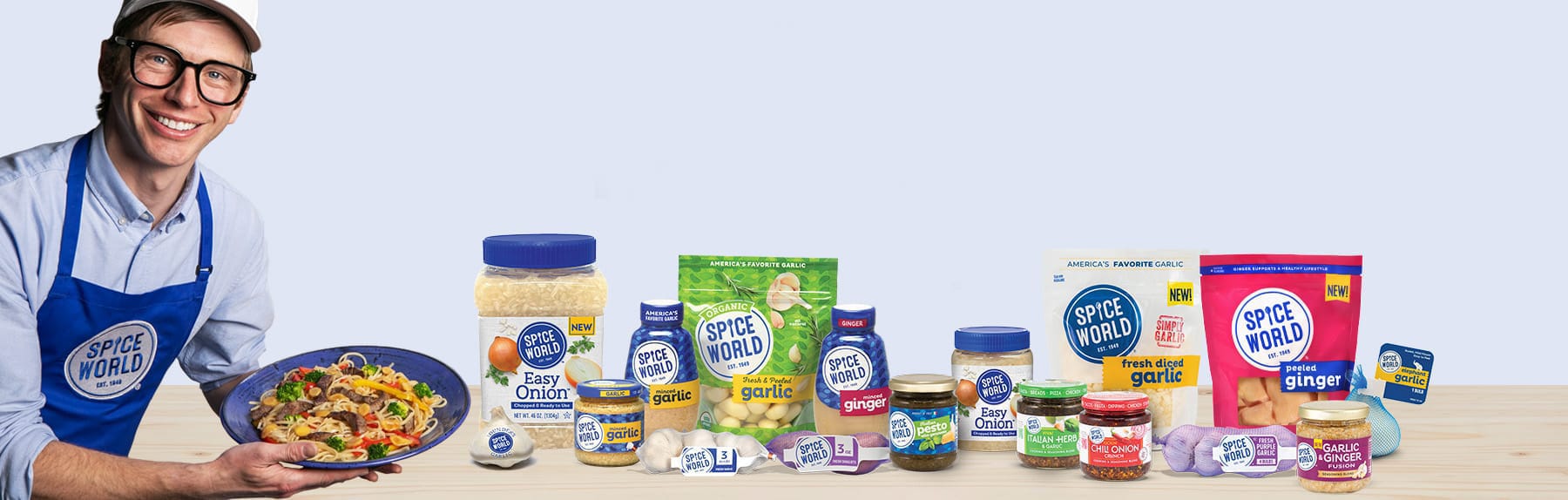 “Spice World products work well with a variety of on-trend cuisines, especially Asian, Caribbean and Latin cuisines that prominently feature garlic and ginger,” continued Kiser. “Our garlic, onion and ginger options help provide a great variety of easy-prep meal options for consumers.”