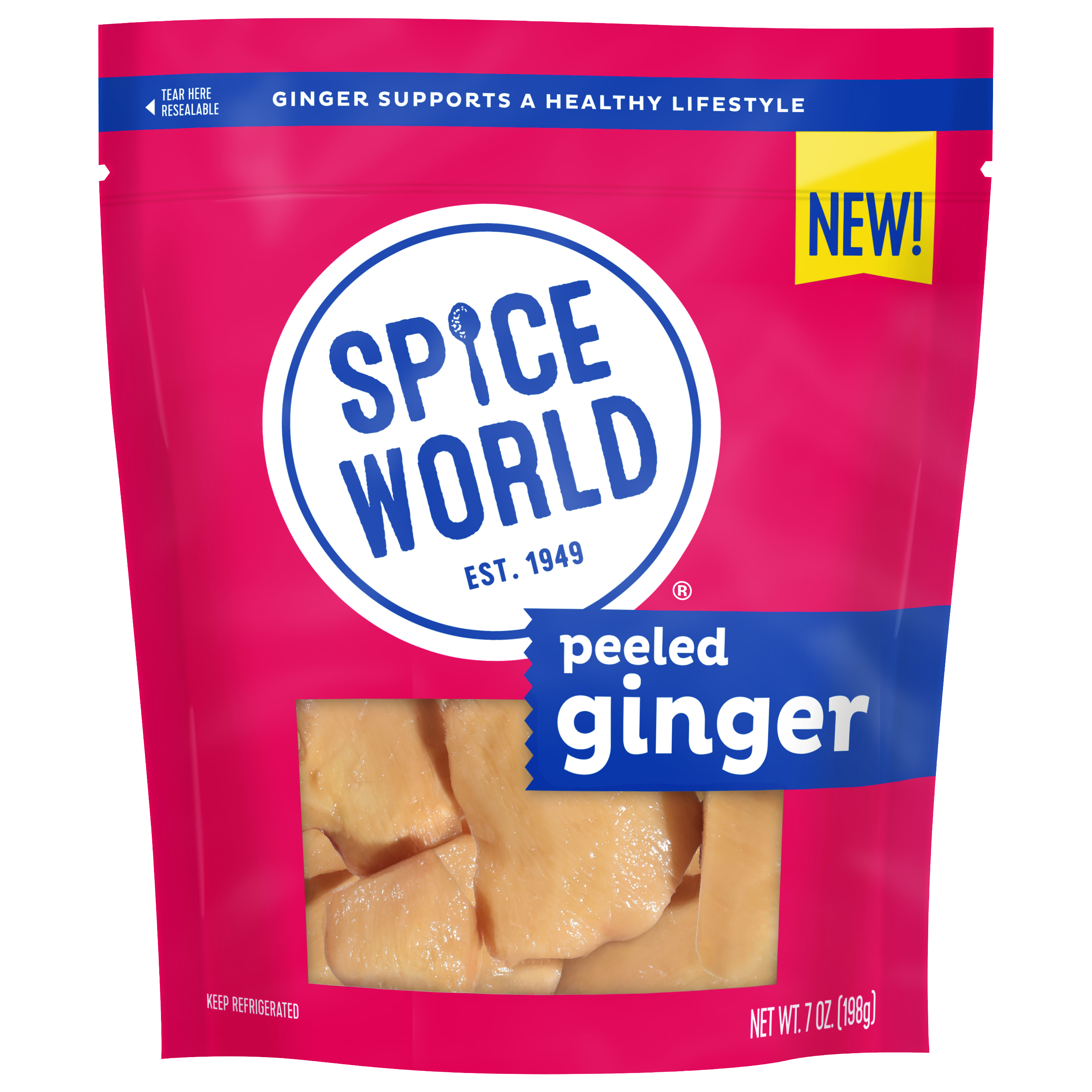 Spice World’s Peeled Ginger comes in a 7-ounce resealable pouch and features pre-peeled ginger that saves busy cooks time by removing the outer skin in advance. It’s perfect to add to Caribbean, Indian and Asian cuisine recipes for an undeniably spicy and warm flavor. Peeled ginger joins the jarred and squeezable minced ginger options from Spice World.